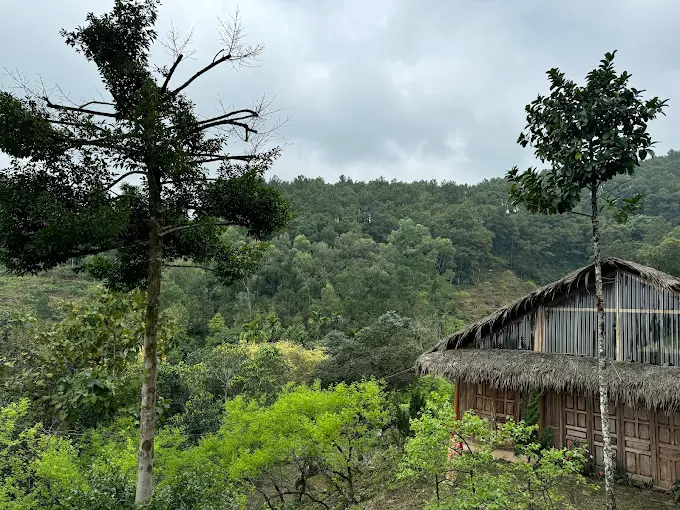 - Đặc điểm kiến trúc: Không gian được thiết kế theo phong cách tối giản với nhà tranh, nền đất, mang lại cảm giác bình yên và tách biệt khỏi sự ồn ào.